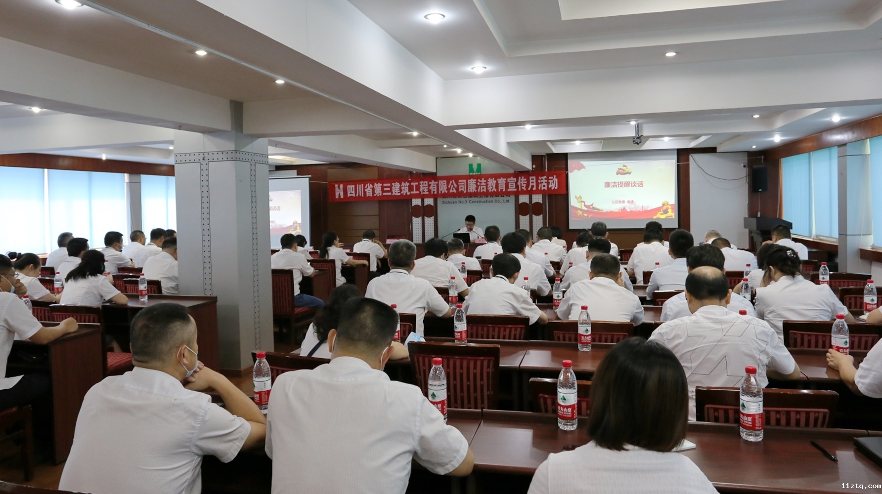 为认真贯彻落实集团廉洁教育月活动安排部署,公司于7月17日下午组织召开廉洁教育大会,公司在家领导班子成员、总经理助理、各部门负责人,分公司班子成员、财务科长、项目经理代表等近80人参加会议。 为起到用身边事...