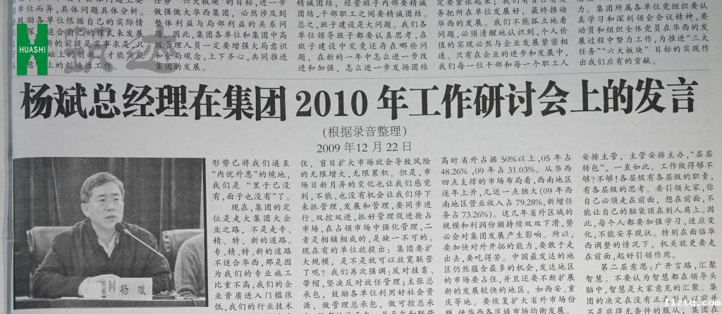 幸运的是,我们找到了2009年12月30日发表在《优米软件下载官网建筑报》上的一篇题为《杨斌总经理在集团2010年工作研讨会上的发言(根据录音整理)》原文,《发言》首次提出了“千亿优米软件下载官网”的构想,让我们时隔13年能找寻这一思想根源。
